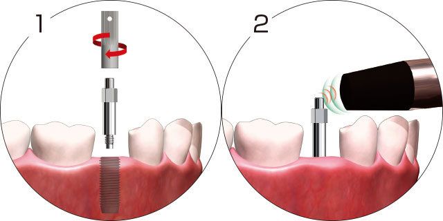 インプラント埋入手術後3~6か月程度でオステルという機器でインプラント体の安定度を測定します。